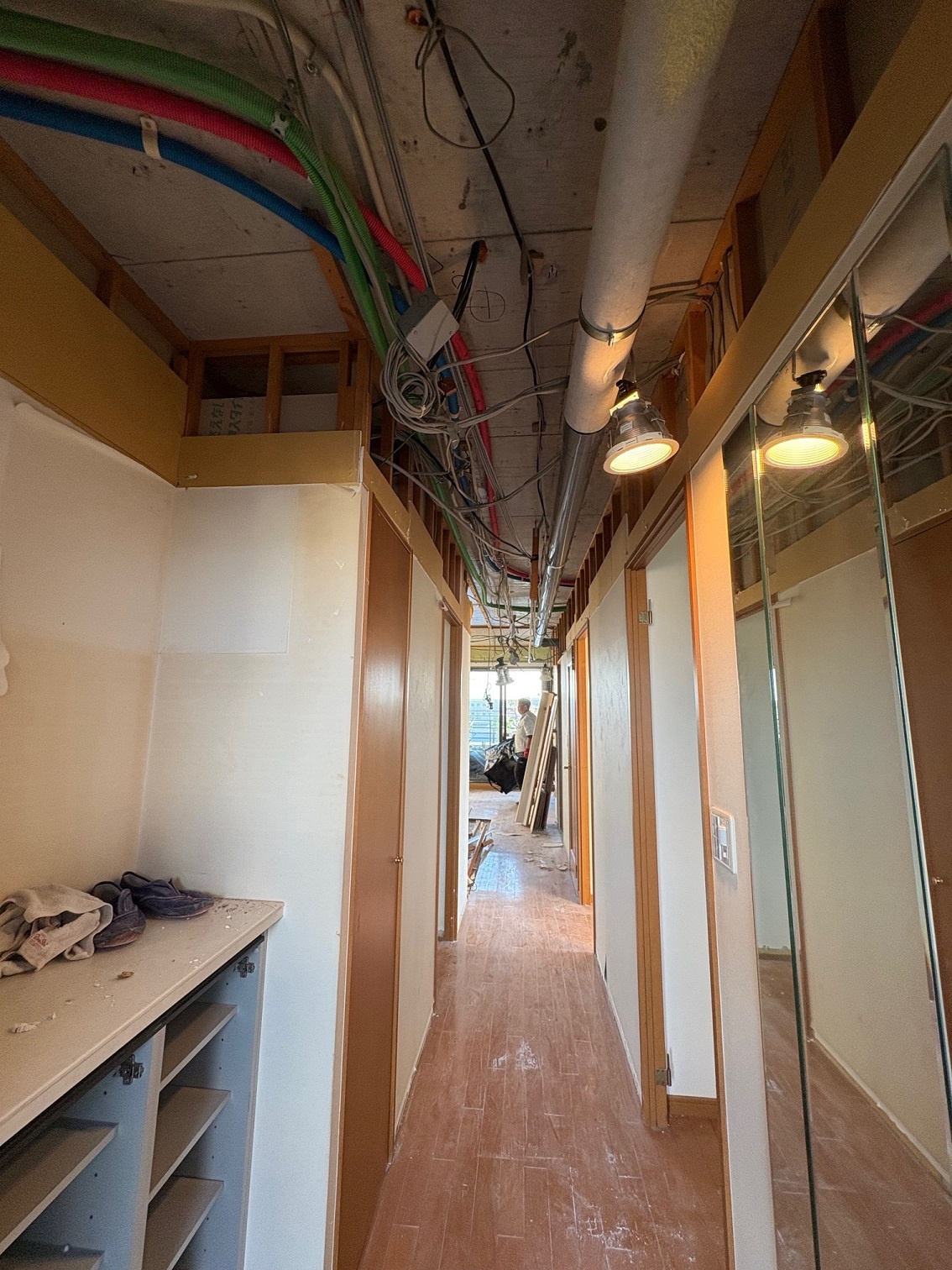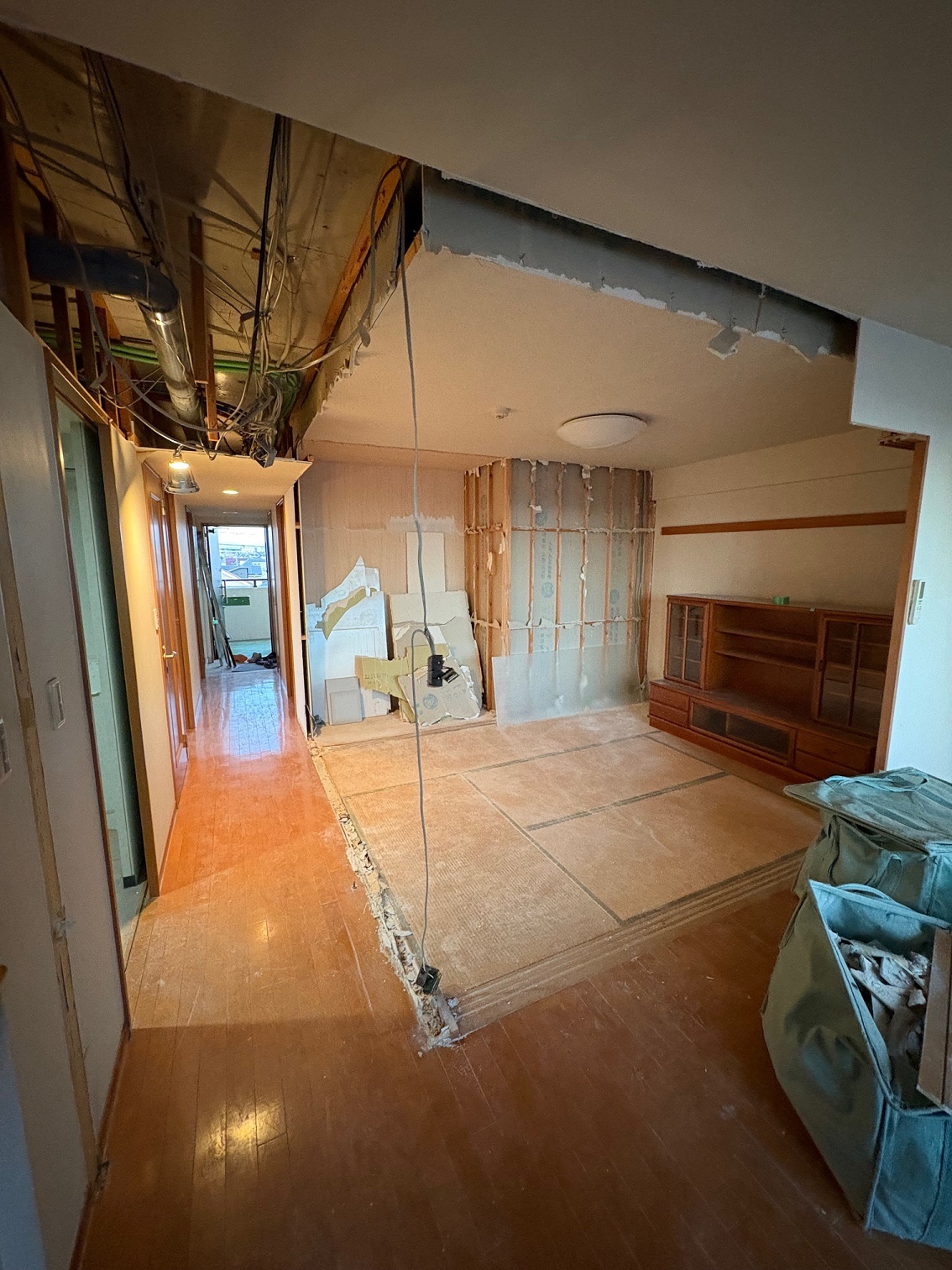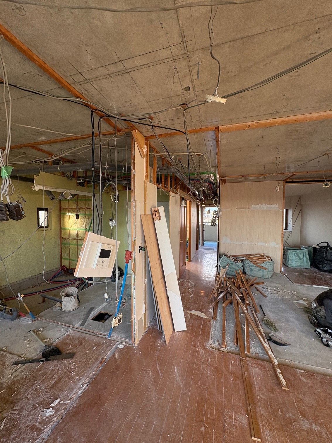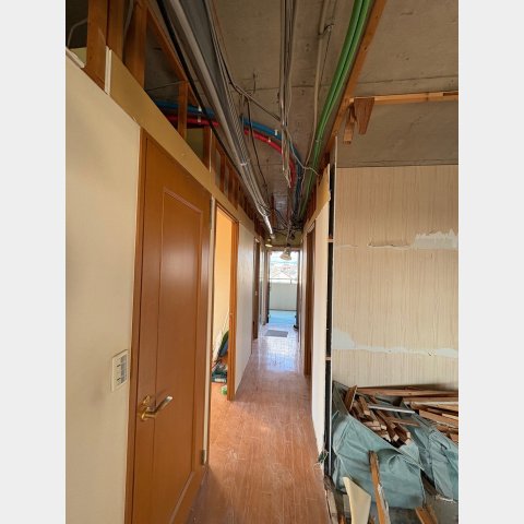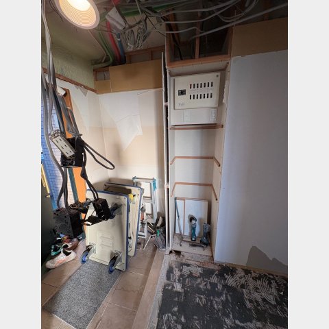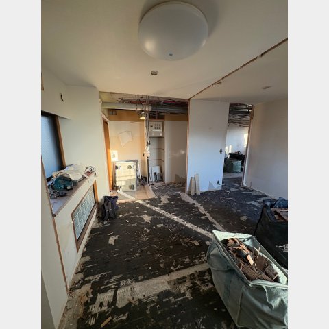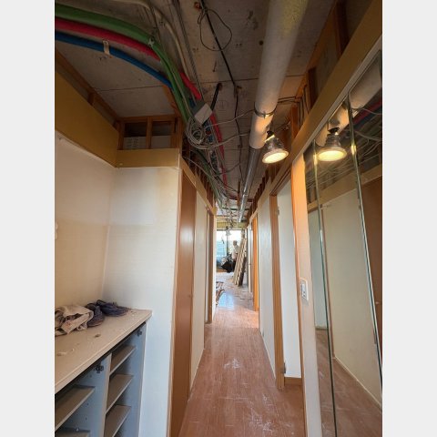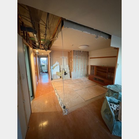 2025.12 西宮市 マンション 内容 マンションリフォーム 施工 玄関・廊下 洋室① 洋室② 新設ウォークインクローゼット WC 洗面脱衣所 浴室 1620サイズ LIXIL リノビオV1616 キッチン 現況:L型キッチン UB・洗面脱衣所スペース減少→ダイニングキッチン拡張 和室6帖+リビング→リビング(一部ウォークインクローゼット) 床嵩上げ施工