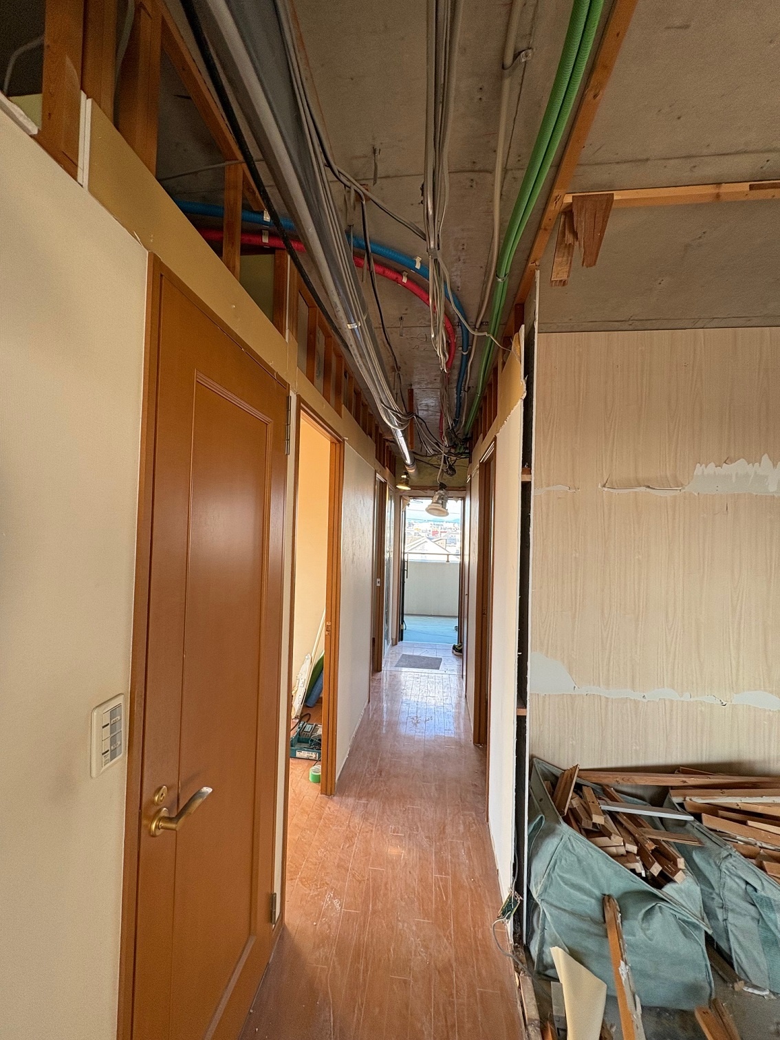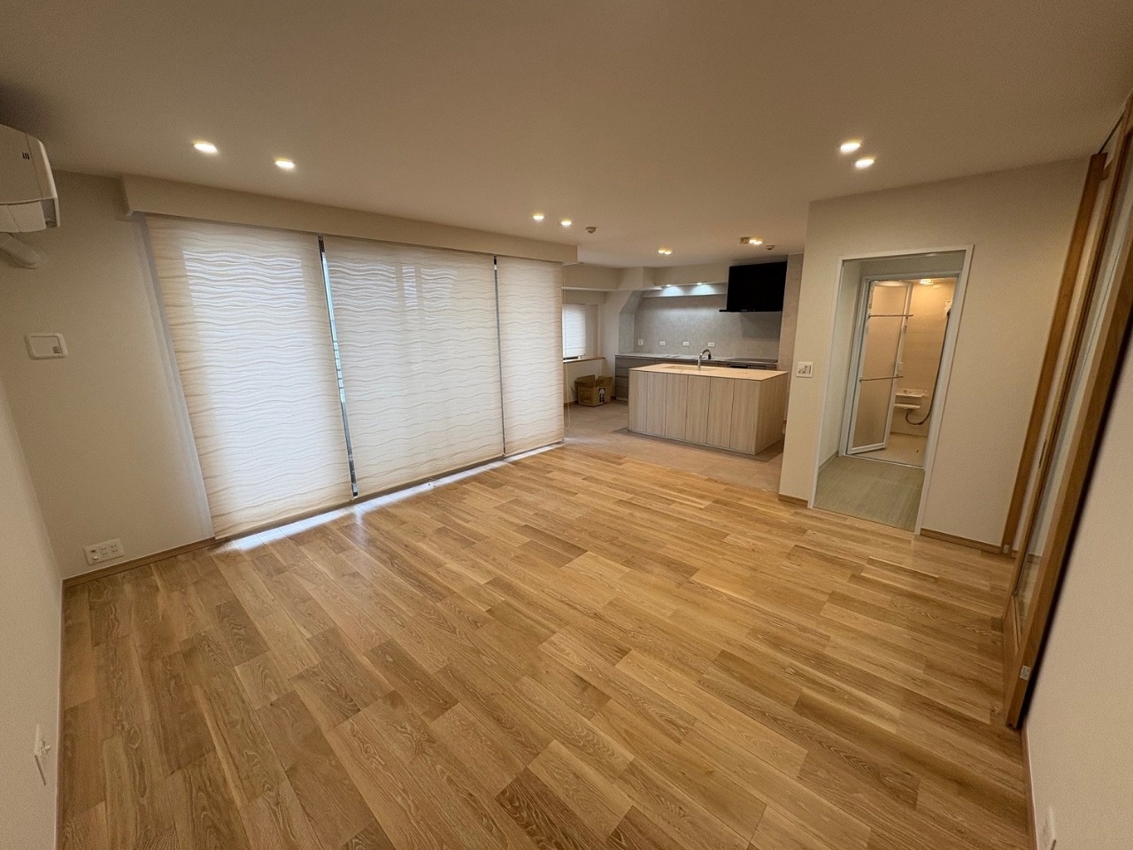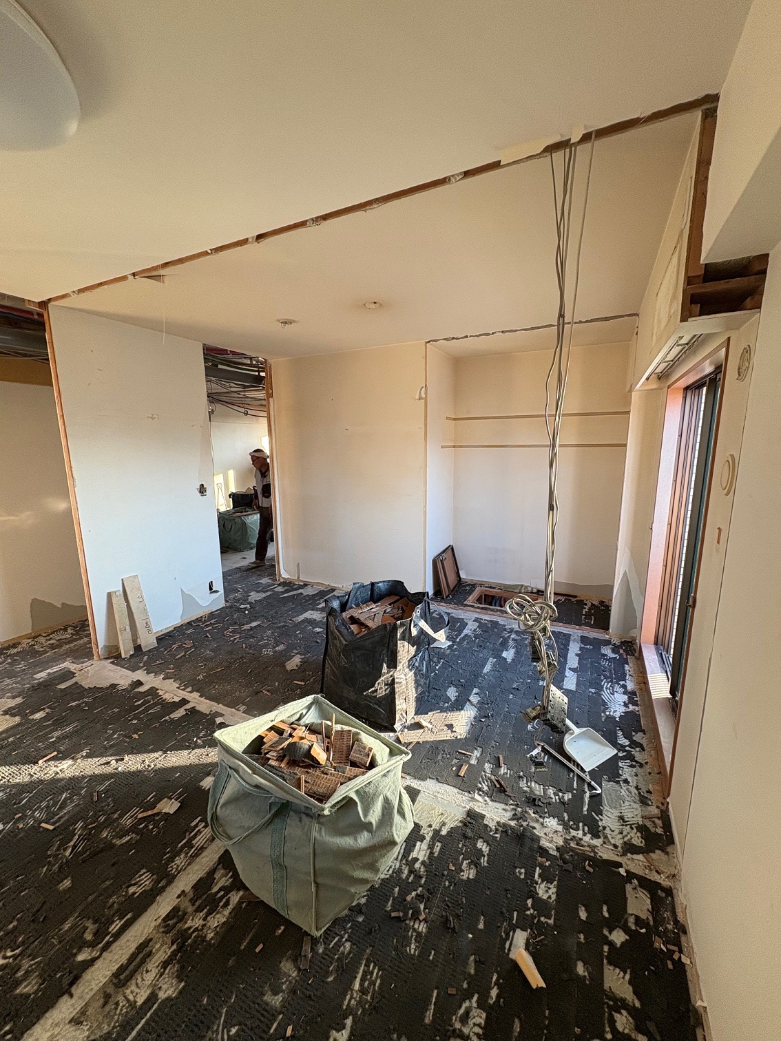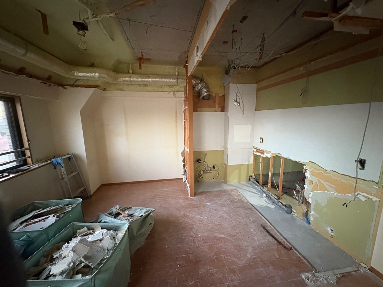 2025.12 西宮市 マンション 内容 マンションリフォーム 施工 玄関・廊下 洋室① 洋室② 新設ウォークインクローゼット WC 洗面脱衣所 浴室 1620サイズ LIXIL リノビオV1616 キッチン 現況:L型キッチン UB・洗面脱衣所スペース減少→ダイニングキッチン拡張 和室6帖+リビング→リビング(一部ウォークインクローゼット) 床嵩上げ施工