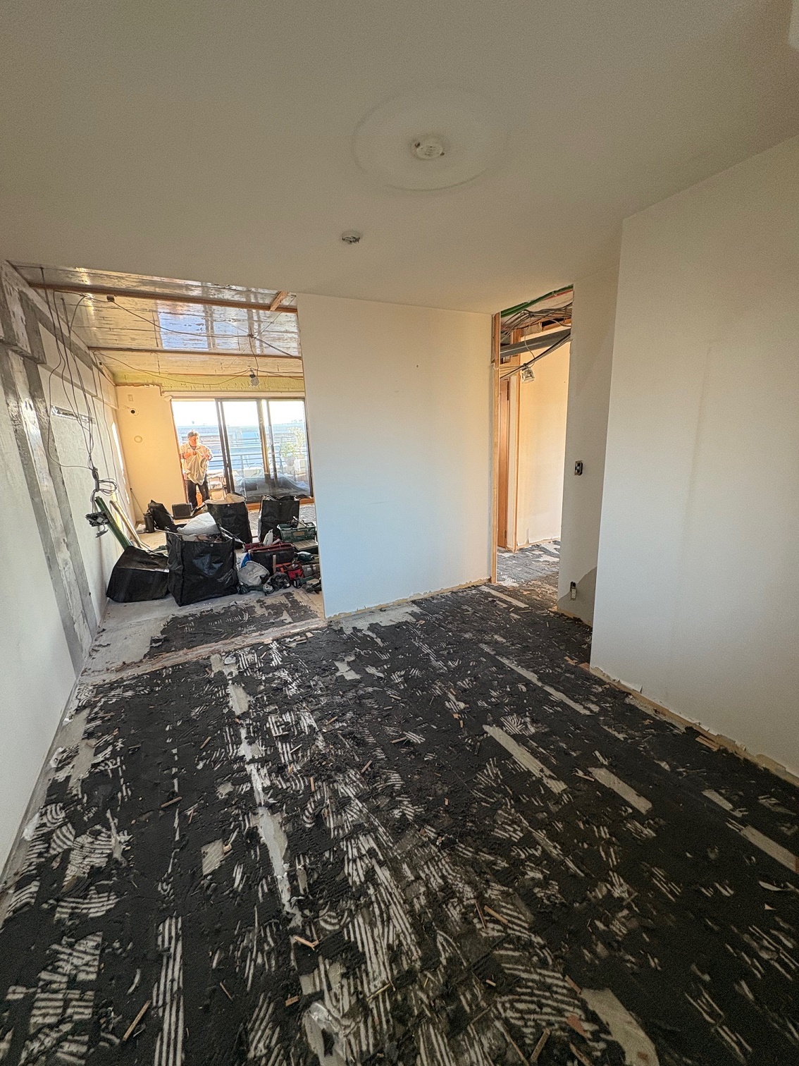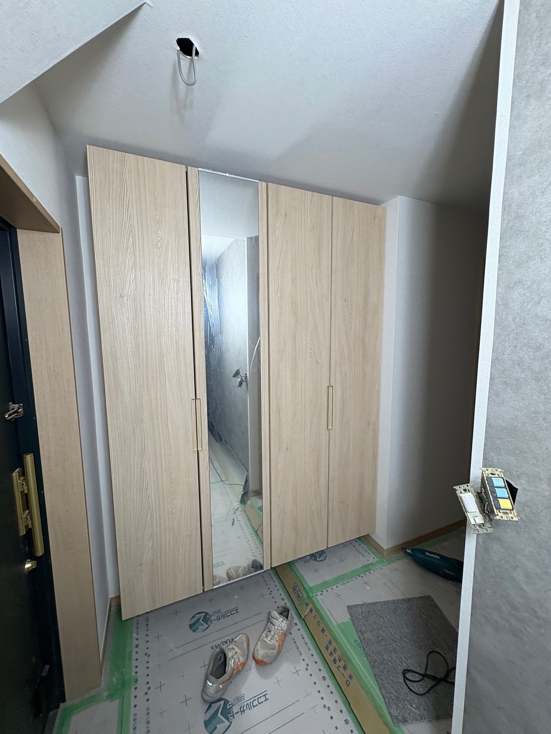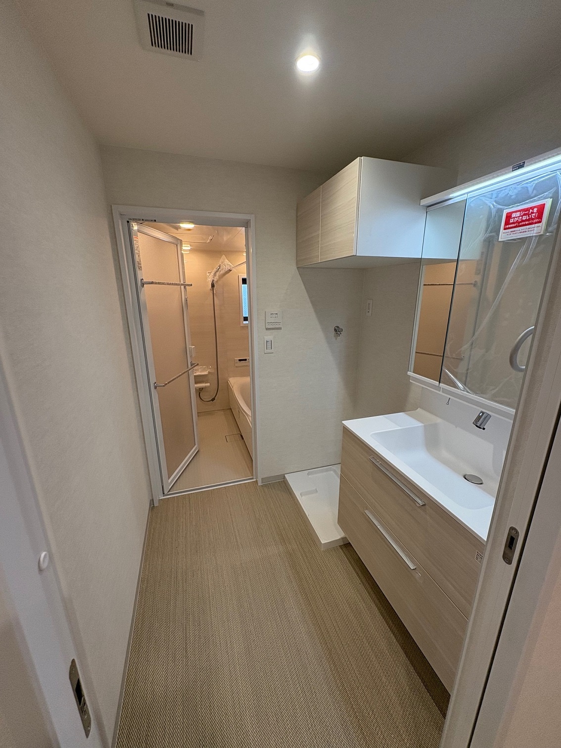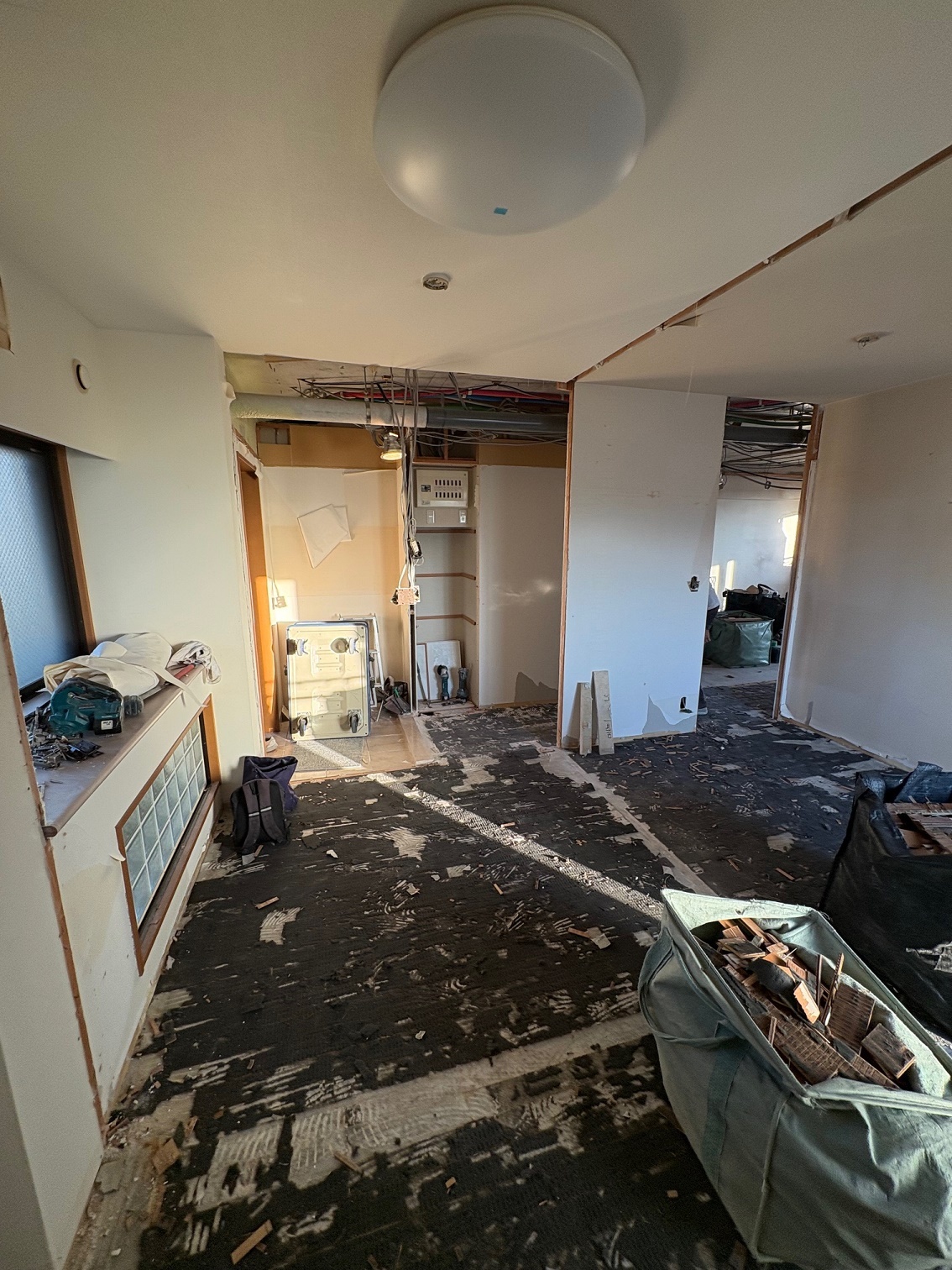 2025.12 西宮市 マンション 内容 マンションリフォーム 施工 玄関・廊下 洋室① 洋室② 新設ウォークインクローゼット WC 洗面脱衣所 浴室 1620サイズ LIXIL リノビオV1616 キッチン 現況:L型キッチン UB・洗面脱衣所スペース減少→ダイニングキッチン拡張 和室6帖+リビング→リビング(一部ウォークインクローゼット) 床嵩上げ施工